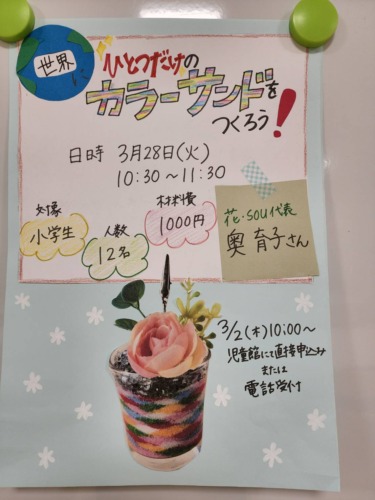 【カフェがお休みとなったため中止となりました】ひな祭りカラーサンドワークショップ