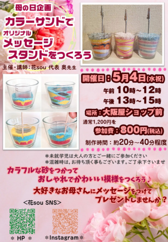 5月4日 黒部市ショッピングセンターメルシーにてカラーサンド体験会