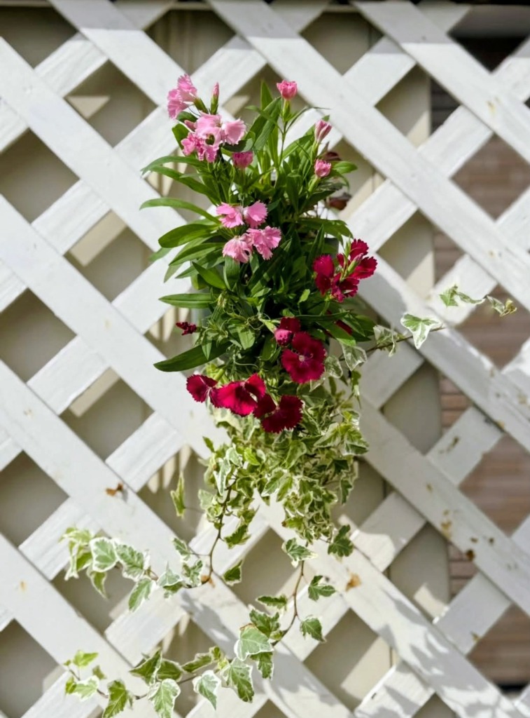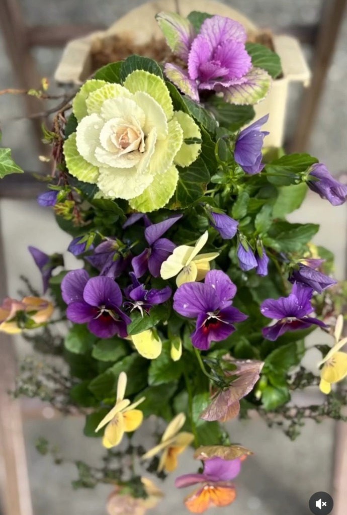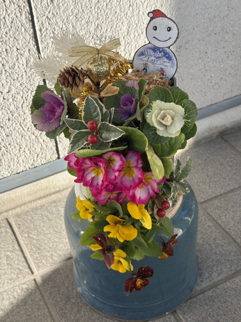 体験会で作られたオステオスペルマムのフラポット。綺麗です