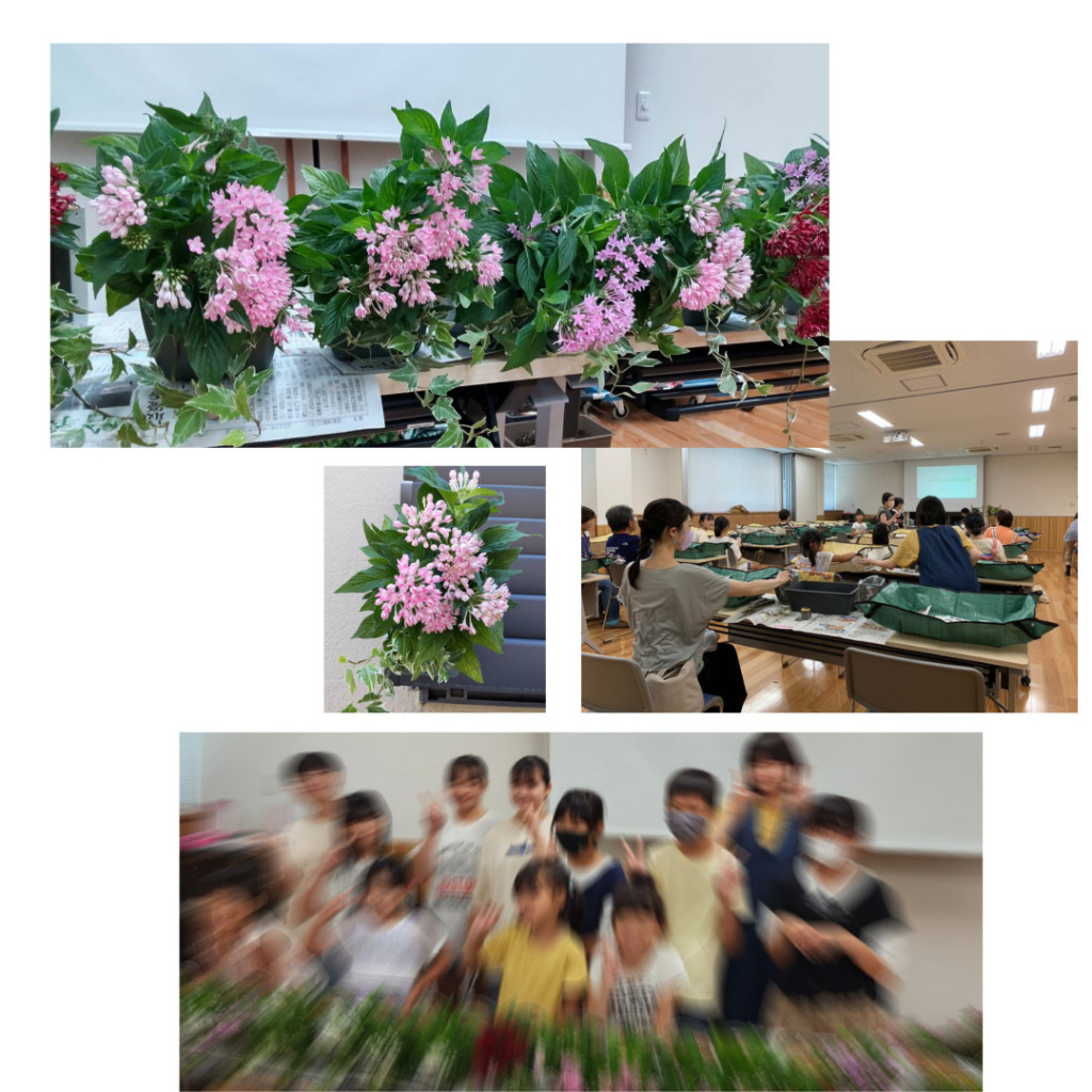 公民館でエコフラポットワークショップ ペットボトルの蓋でできた容器なので、 お花を植える前にSDGsについてちょこっと勉強しました。 そのあとは、皆さんでわいわい言いながらペンタスとアイビーを植えました。 夏休みのいい思い出になったかな♡