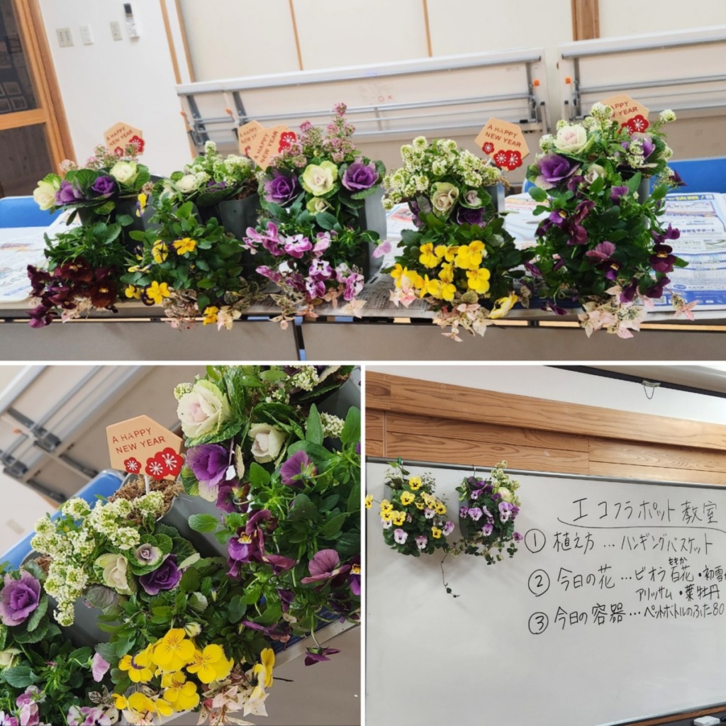 公民館でお正月のエコフラポットを皆さんと作りました。