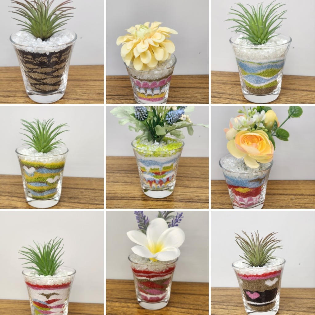 好きな色の砂で好きな模様を作り、好きなピックで仕上げました。