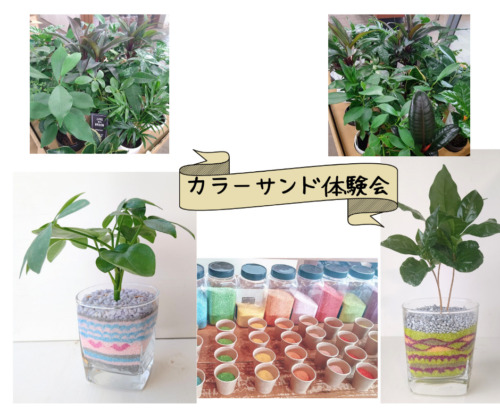 カラーサンドワークショップのお知らせ 観葉植物を可愛く飾ります